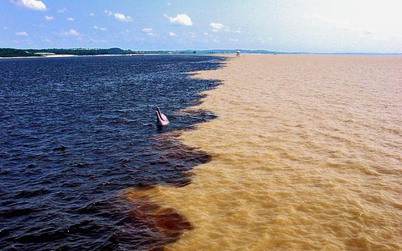O fenômeno natural onde os rios Negro e Solimões correm lado a lado sem se misturar por vários quilômetros, criando um espetáculo único.